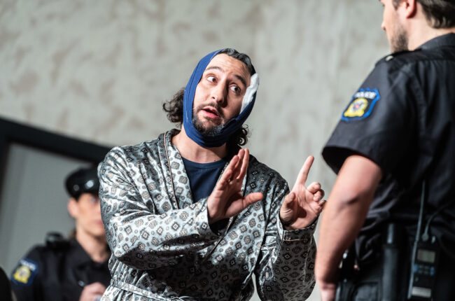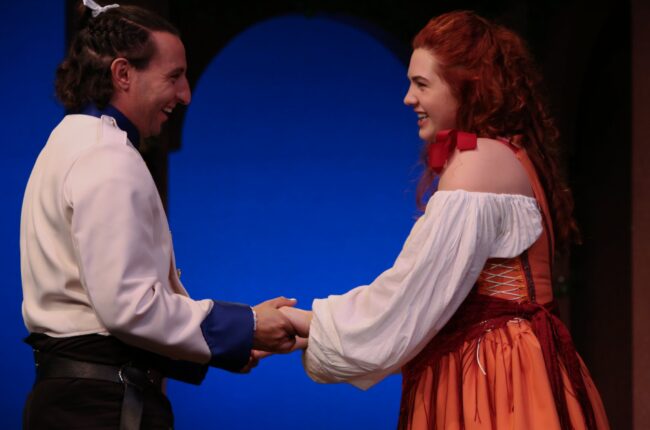 "Fabrizio Daniele's Benedick achieved such antic heights of humor, he had the audience in the palm of his hand. Most impressive was his physical humor. Clearly an athlete, his somersaults, leaps, and pratfalls added a delightful color to an already finely tuned characterization. Daniele's use of the language was superb, making the Shakespearean verse immediate and clearly understood. But the most important aspect of this Benedick was Daniele's dynamic emotional depth. He switched from derisiveness to empathy and heart-filled affection in all the important transitions for this character. This Benedick had a profound mixture of virility and a cupid unbound.”